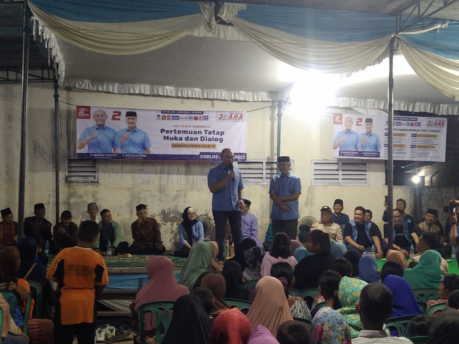 Lubuklinggau, 26 September 2024 – Mendekati Pilkada Lubuklinggau, pasangan calon Wali Kota dan Wakil Wali Kota, H Rahmat Hidayat (Yoppy Karim) dan H Rustam Efendi, disambut meriah oleh hampir seribu warga dalam pertemuan tatap muka dan dialog di Kelurahan Petanang Ulu.