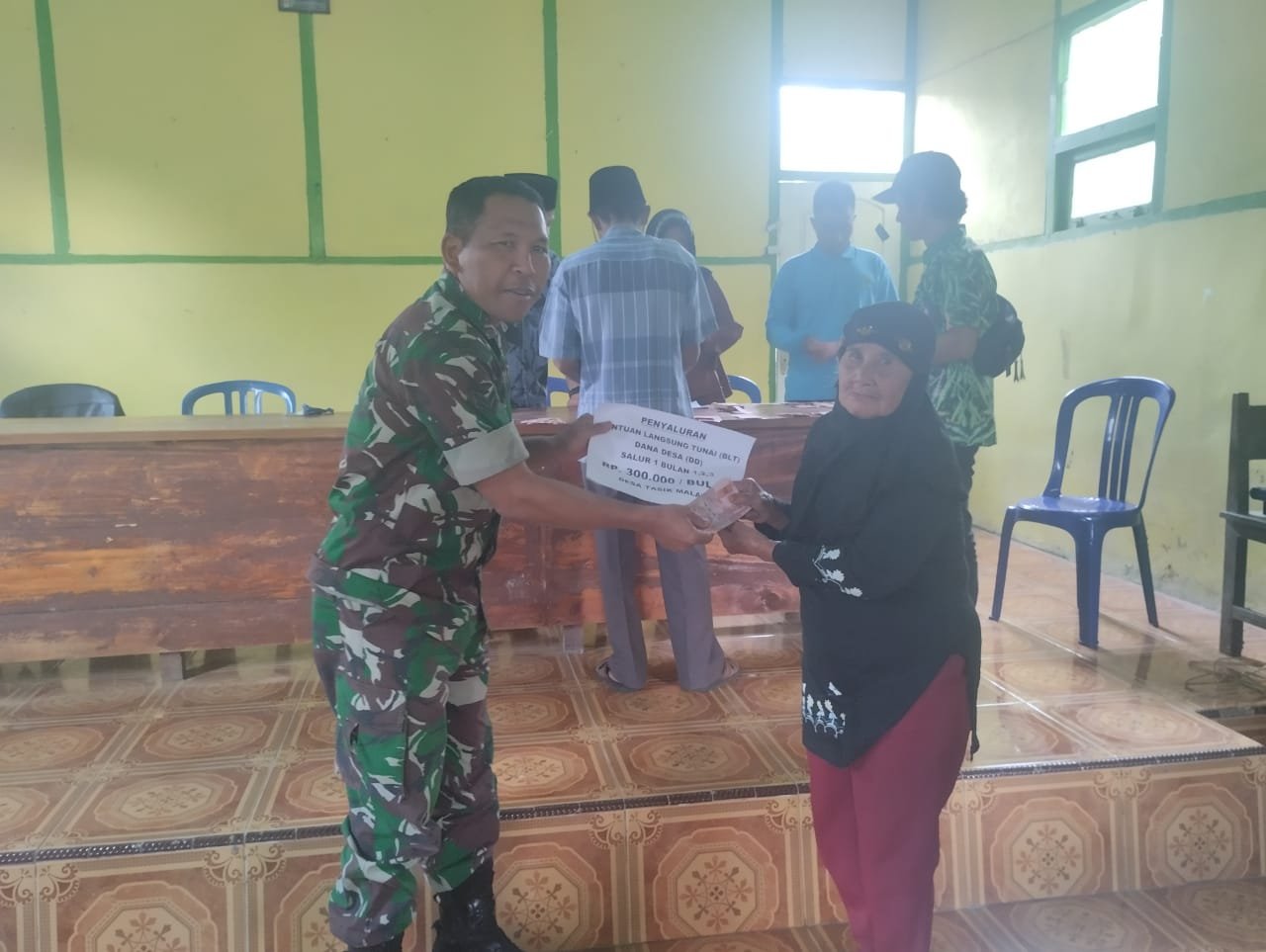 Penyerahan BLT disaksikan perangkat desa, BPD, pendamping desa, Babinsa, Bhabinkamtibmas dan